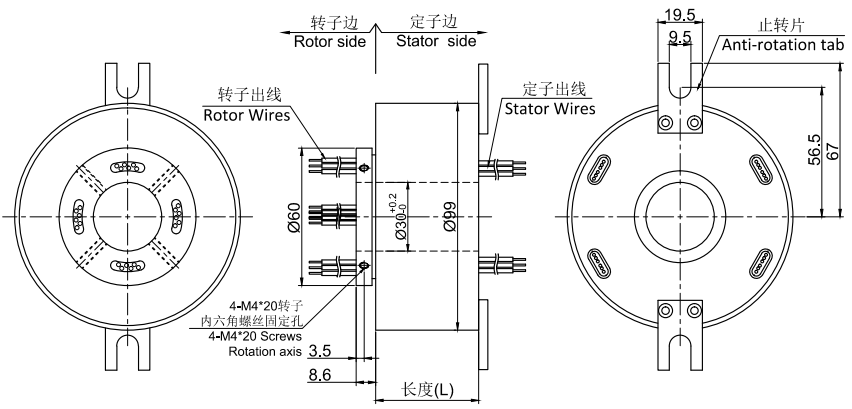 GT3099系列整體式精密導電滑環,主要應用于360度連續旋轉且需要保證電源,信號不能中斷的場合:多用于包裝機械、自動化機床、涂布機、自動鎖螺絲機、槍刺地毯機器人、智能磨削機器人、拋光機、智能倉儲機器人、 電纜卷軸、壓模機、離心機、倉儲物流車、噴涂設備等任意需要360°旋轉導電或傳輸各種控制信號的裝置。