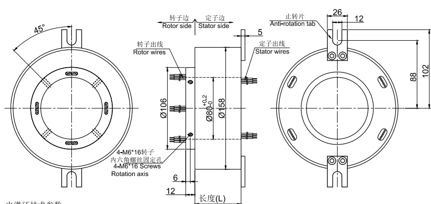GT80158系列整體式精密導電滑環,主要應用于360度連續旋轉且需要保證電源,信號不能中斷的場合:多用于醫療器械、紡織業設備、礦山工程機械、塑膠/硅膠制品生產設備、轉馬游樂設備、自動化生產設備、珍珠棉(E P)聚乙烯發泡塑膠機械設備、工業機器人、教育仿真設備、工程檢測儀器、金屬表面精整加工設備、自動拋光設備、機械手、造紙生產線、印刷機械設備、干燥機設備、熱熔膠涂布機、連續輸送機械設備、傳感器、電纜生產與 檢測設備等任意需要360°旋轉導電或傳輸各種控制信號的裝置。