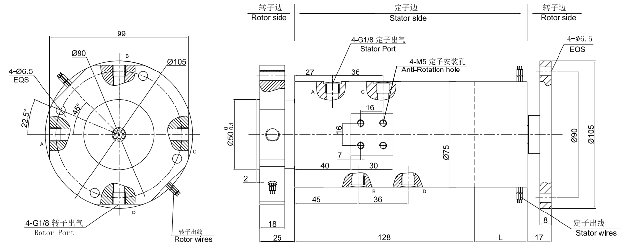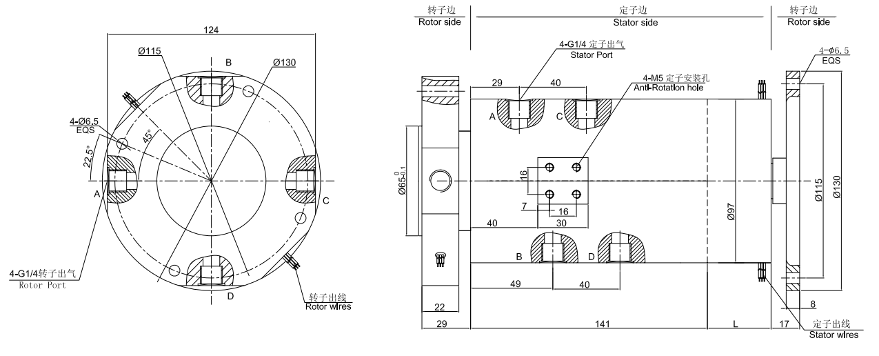 • · 標準為法蘭安裝形式,4進4出旋轉接頭,4路氣液旋轉接頭可定制空心軸安裝