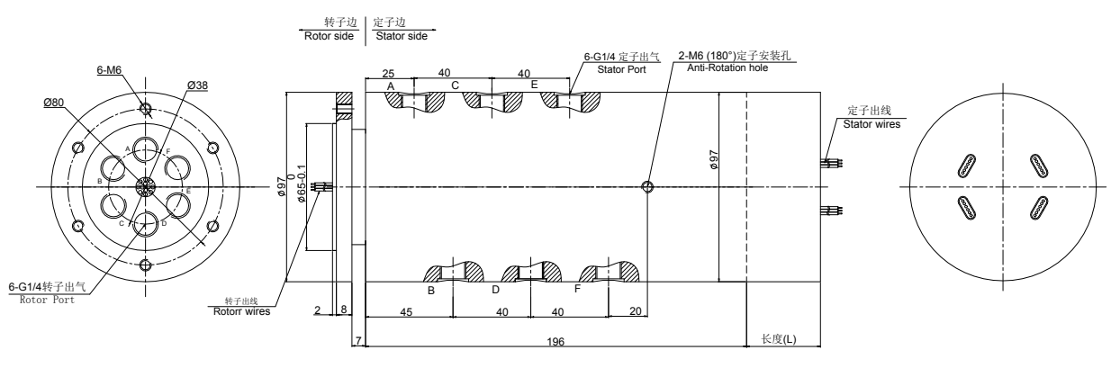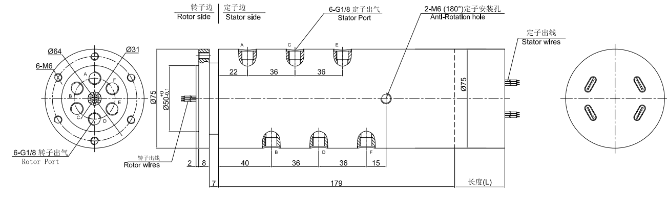 注:10A和信號(5A) 可以任意組合,最大可到96路,詳細請咨詢客服。6進6出旋轉接頭,6路氣液旋轉接頭,氣液電組合滑環可在標準產品上進行非標定制,請咨詢客服。