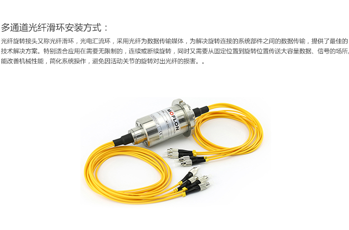 光纖/光電滑環是目前工業滑環里面技術難度最高的的一個系列產品,主要應用于360度連續旋轉且需要保證電源,光纖信號不能中斷的場合:如高端機器人、高端物料輸送系統、軍用車輛上的轉動炮塔、遠程控制系統、雷達天線、光纖傳感等轉臺(速率臺)的高速視頻、數字、模擬信號的傳輸和控制、醫療系統、視頻監視系統、保障國家或國際安全系統海底作業系統、緊急照明設備、機器人、展覽/顯示設備、醫療設備等;