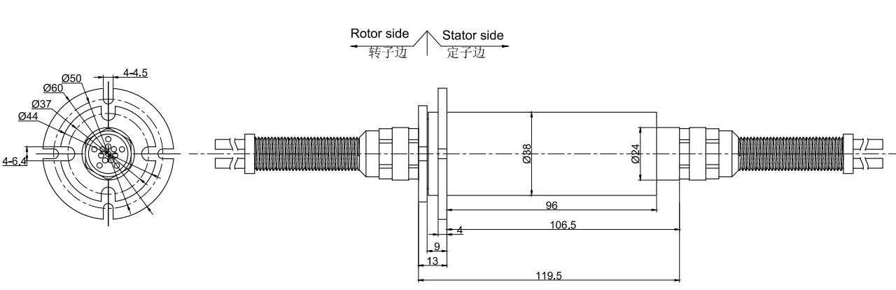 • · 無接觸、無摩擦,壽命長,單芯可達1億轉以上