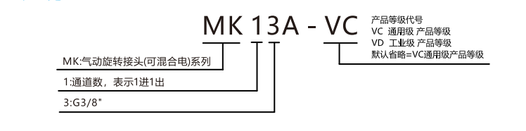 • · MK13A系列是1單通道氣動旋轉接頭,1進1出,過壓縮空氣,真空等, 帶G3/8"牙