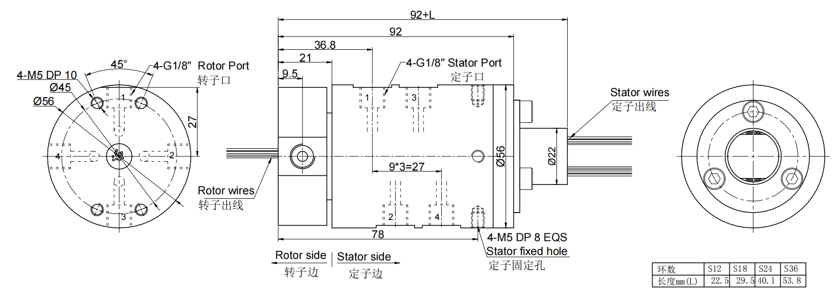 旋轉氣接頭部分技術指標 | 機械技術指標 | |||