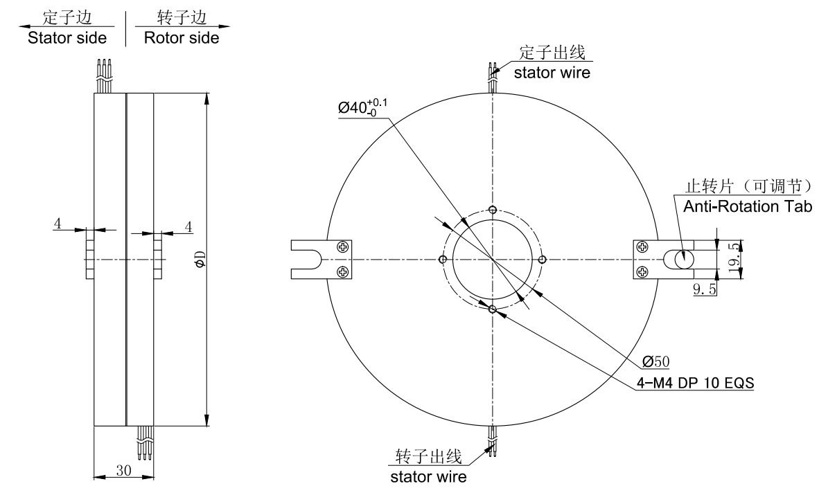 • · MP240系列2 4 6 8 10路盤式滑環導電環, 適用于長度限制的情況, 厚度僅為30mm,全鋁合金結構,接觸材料采用貴金屬+超硬鍍金處理,運轉穩定,電阻波動小。主要應用在高度空間有限,橫向空間基本不受限制的特殊空間要求。