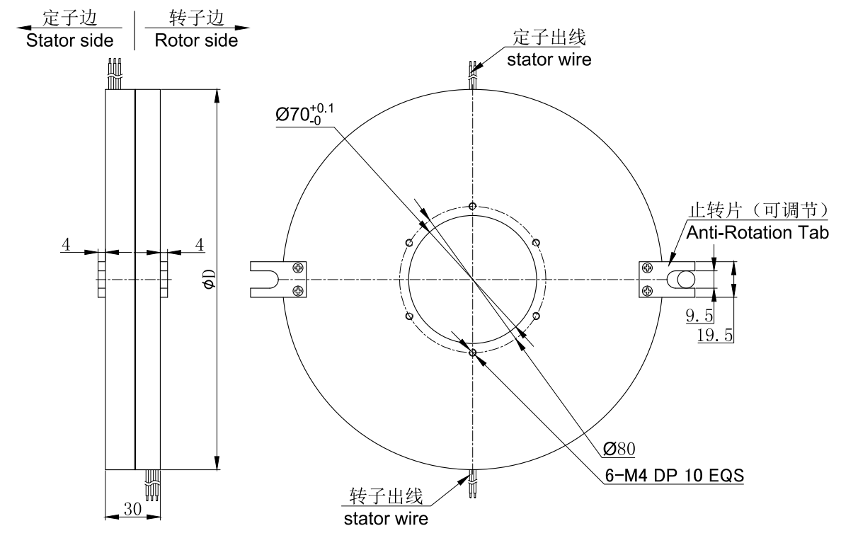 扁平盤式滑環,主要應用對安裝高度有嚴格限制的場合,要求360度連續旋轉且需要保證電源,數字信號,模擬信號不能中斷:如旋轉門,醫用CT,安檢設備,以及其他工業自動化設備,智能制造設備, 焊接機器人等;