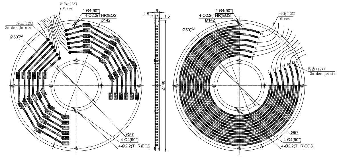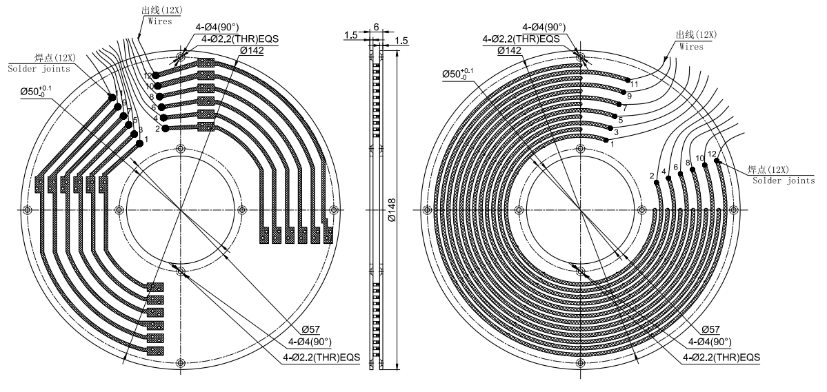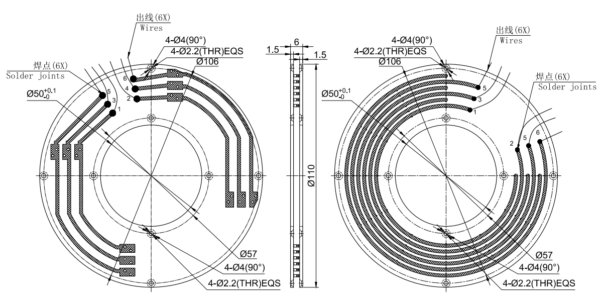• · MPCB050系列超薄盤式滑環,創新性使用PCB基材,最薄可達5.8mm,采用超硬鍍金處理,超厚銅箔工藝,最大電流可達10A, 定子線和轉子線對應使用彩色導線,簡化了安裝和連接。