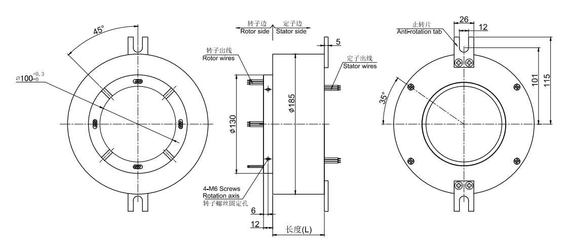 MT100185系列整體式精密導(dǎo)電滑環(huán),主要應(yīng)用于360度連續(xù)旋轉(zhuǎn)且需要保證電源,信號(hào)不能中斷的場合:多用于加熱滾筒、自動(dòng)焊接設(shè)備、金屬表面加工設(shè)備、擠出流延復(fù)合設(shè)備、靜態(tài)扭矩傳感器、壓力變送器、工業(yè)機(jī)器 人、電線(網(wǎng)線)電纜生產(chǎn)設(shè)備、電子(紡織品)質(zhì)量檢測儀器、機(jī)器人生產(chǎn)線、汽車涂裝和裝配線的車間設(shè)備改裝、加速度傳感器、研磨分散機(jī)、旋轉(zhuǎn)餐桌等任意需要360°旋轉(zhuǎn)導(dǎo)電或傳輸各種控制信號(hào)的裝置。