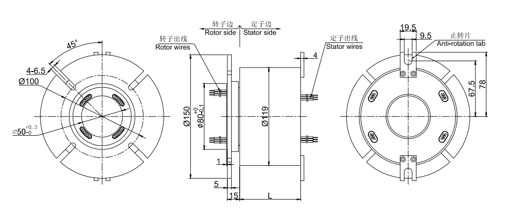 過孔式導電滑環是目前工業滑環里面性價比最高,最暢銷的一個系列產品,主要應用于360度連續旋轉且需要保證電源,信號不能中斷的場合:如各種雷達,安防設備,娛樂設備,各種機器人、機械手,各種浮空器,各種風力發電設備吹瓶機,燈檢機,各種轉臺,游樂游藝設備,虛擬3D,VR設備, 車載衛星天線,船載衛星電線,電纜卷筒,擦窗機設備,旋轉餐桌,旋轉舞臺,旋轉屏幕,旋轉餐廳,電動工程機械,最新的VR模擬仿真設備等。;