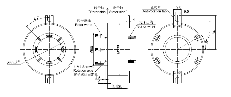 MT60130系列整體式精密導電滑環,主要應用于360度連續旋轉且需要保證電源,信號不能中斷的場合:多用于干燥設備(如烘干機、干燥滅菌設備、糧食烘干機等)、流延膜設備、三相交直流儀表檢定裝置、游樂設施(如兒 童乘騎系列游藝機、旋轉木馬)、研磨拋光機、起重機、安檢專用設備、電影設備等任意需要360°旋轉導電或傳輸各種控制信號的裝置。
