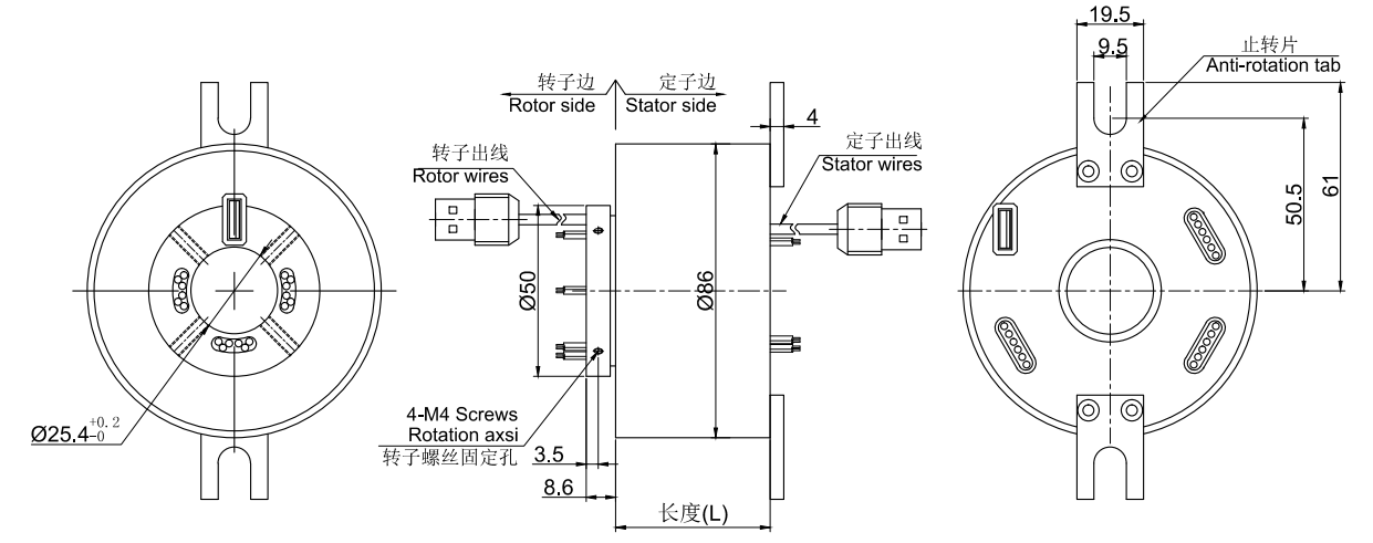 • · MUSB2251系列USB滑環,內孔25.4mm,外徑為標準86mm的緊湊型整體式結構的1通道 USB1.0/USB2.0整體式精密導電滑環,