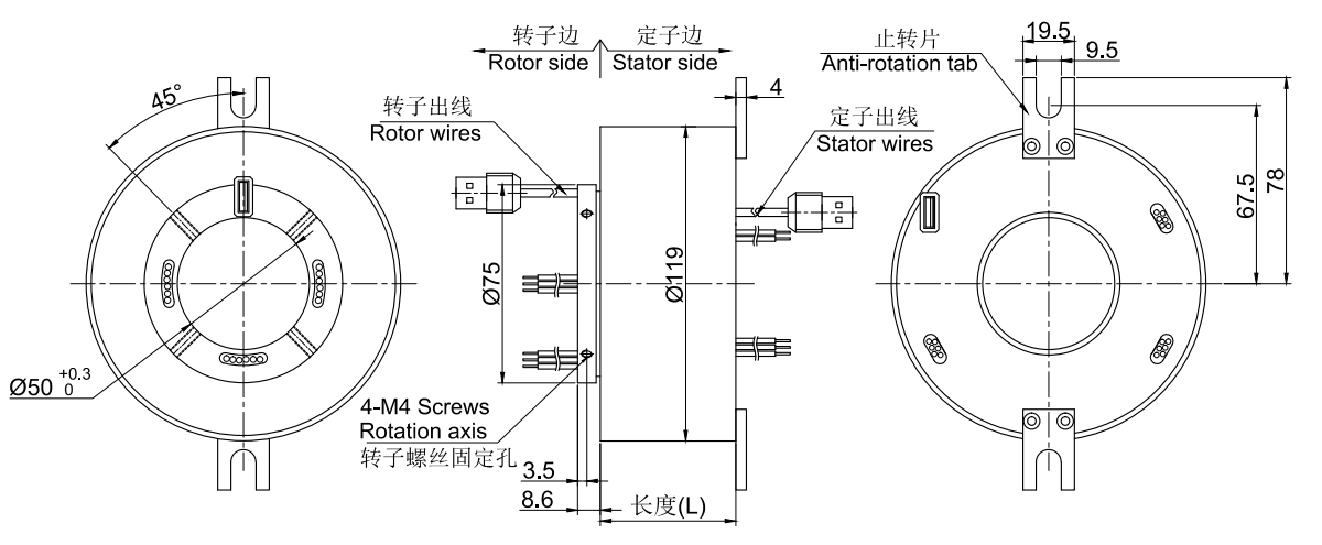 • · MUSB2501系列USB滑環,內孔38.1mm,外徑為標準99mm的緊湊型整體式結構的1通道 USB1.0/USB2.0整體式精密導電滑環,