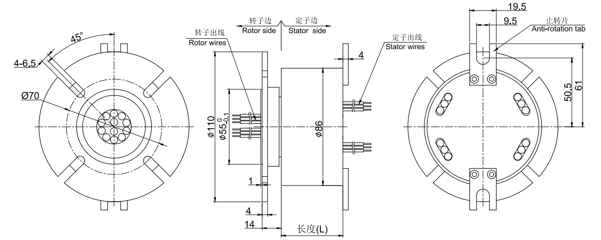 • · MW3086系列是外徑86mm,轉子法蘭安裝的大功率導電滑環。
