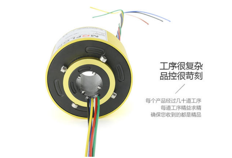 導電滑環的連接方式與其外形尺寸和結構密切相關,一般分為過孔式、法蘭式、分體式等幾種類型。其中過孔式滑環的接線方式是從滑環的兩端出線,轉子中心軸的端面引出線來,如果通路數非常多,會有兩三個橢圓形出線孔,定子端出線一般是側邊的端面上引出線,通常為1~2個橢圓形出線孔;如果是法蘭式的,定子端和轉子端可從滑環中間引出。如果滑環很大,也可以從側面引出。而分體式導電滑環與前兩種不同。分體式的滑環轉子端出線是中心軸的軸壁上出線,定子端就是從側面的刷架上引出線來,分體式的出線方式跟以前的傳統碳刷滑環出線方式相同。