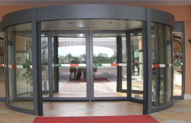 旋轉門是賓館、寫字樓等建筑物中常用的門,主要包括帽頭、曲壁、旋轉門體和電氣控制裝置。其中帽頭的一部分和曲壁是固定部分,即不隨旋轉門體轉動的部分。帽頭的另一部分和旋轉門體則是轉動部分。因旋轉門的主要電氣控制裝置一般一部分安裝在固定部分中,另一部分安裝在轉動部分中,所以必須采用旋轉門滑環來解決固定部分與轉動部分之間的信號和電源的連接問題。導電滑環一般安裝在帽頭中,F有的滑環為柱式滑環,它包括絕緣軸、導電環和電刷。絕緣軸的外表面為圓柱面,若干導電環安裝在絕緣軸的外表面上,它們與絕緣軸同軸,并且沿絕緣軸的軸向分布。導電環的外表面為圓柱面,該圓柱面與電刷接觸。