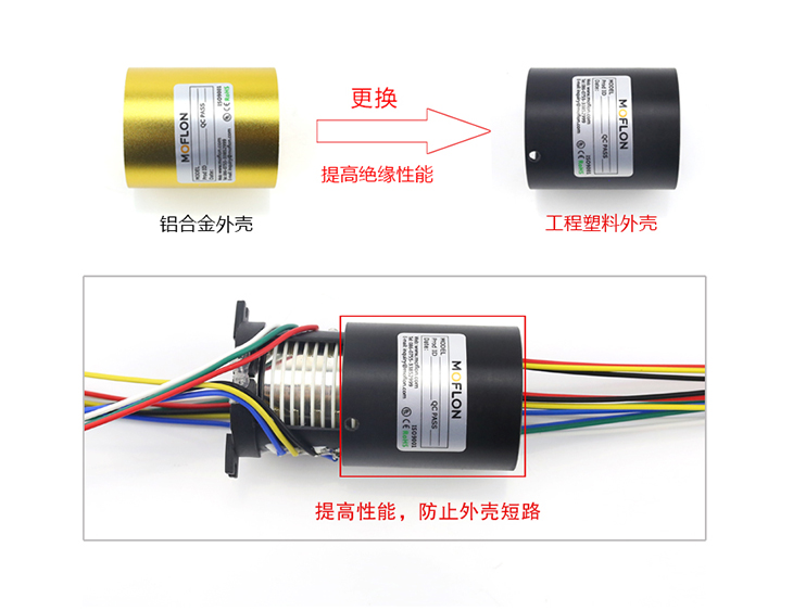 過孔滑環MT1233全系列,黃色金屬外殼更換黑色工程塑膠說明與通知